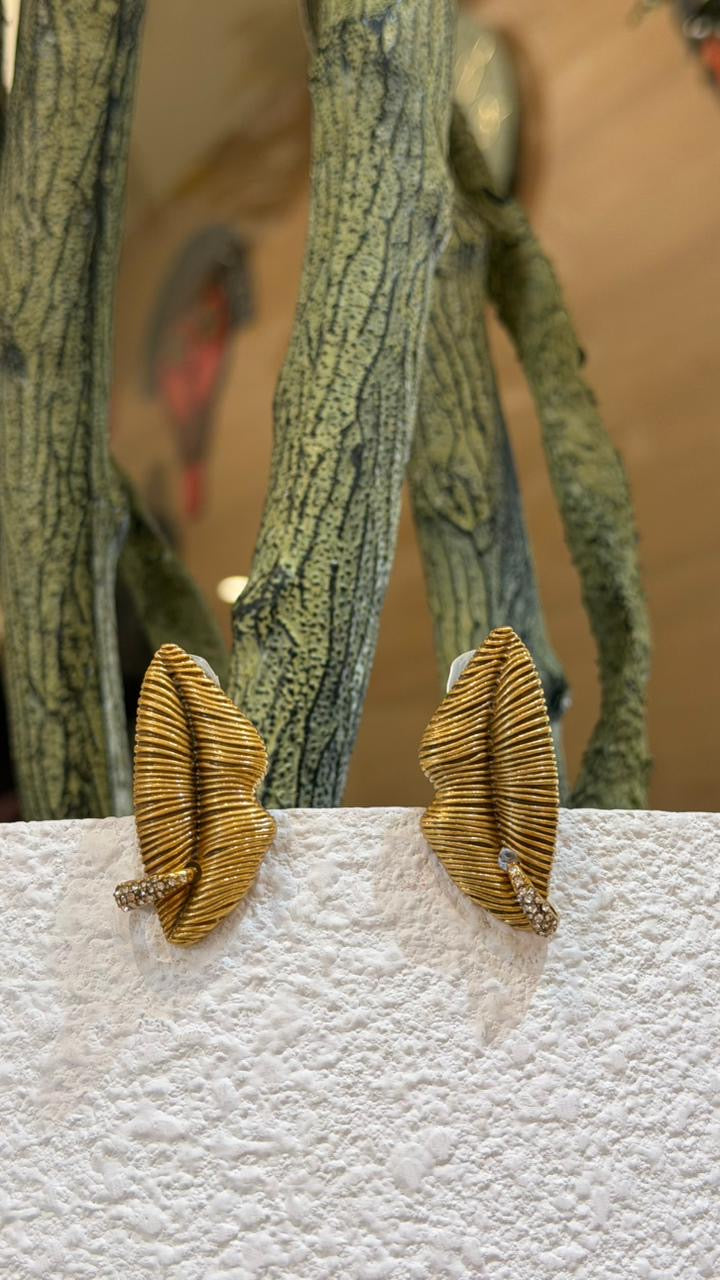 Gold-tone stud earrings with a textured leaf-inspired design and subtle stone accent, offering a modern yet elegant look suitable for everyday and party wear.