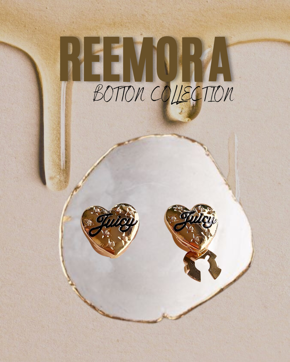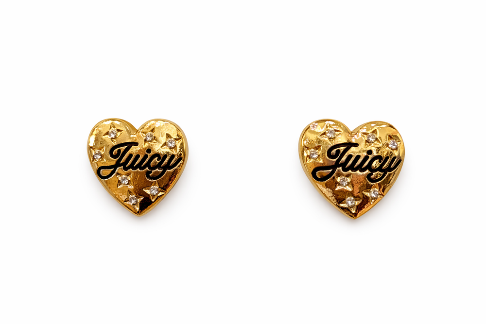 Gold-tone heart cufflinks embellished with crystals and playful typography. A confident, fashion-forward accessory made for expressive styling.