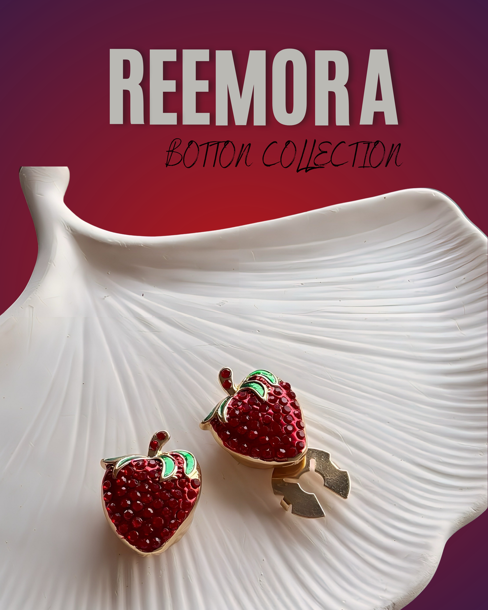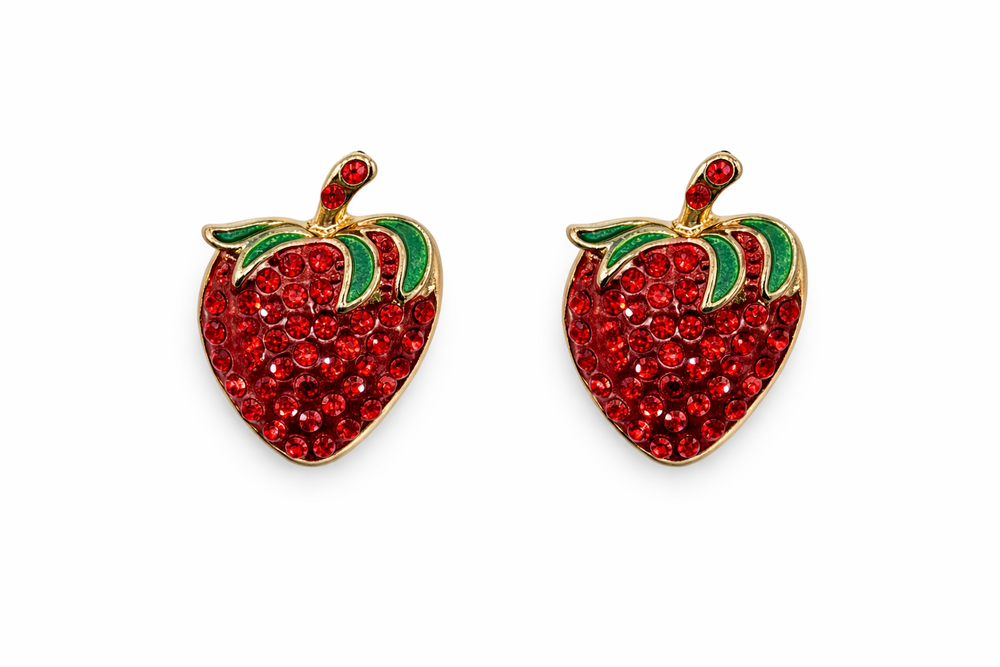 Charming strawberry-shaped cufflinks adorned with red crystals and green enamel leaves. These cufflinks add a pop of color and a fun, fashionable twist to classic white shirts.