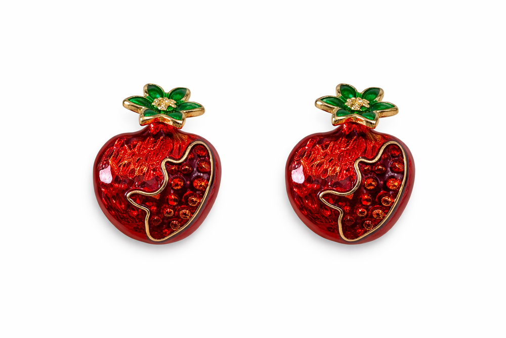 Vibrant and charming, these strawberry-shaped cufflinks showcase textured red enamel with green leaf detailing. A playful yet polished accessory that brings freshness and color to tailored looks.